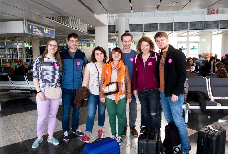 Early morning on Friday we had our flight Munich -> Bordeaux. To make it a proper bachelorette party I have bought us all special pink pins saying “Team Braut” (“Team Bride” in English) and made everyone wear them! Haha! As you can see, this is not the most typical bachelorette company (with guys included), but that’s what happens if you study computer science 😉